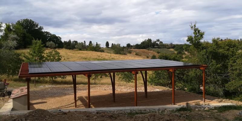 impianto su pensilina parking in legno, 11,5kwp con accumulo 13kwh e wallbox impianto di enostra con cui ecorisoluzioni è convenzionata…