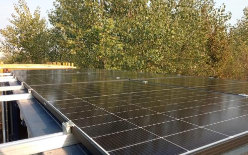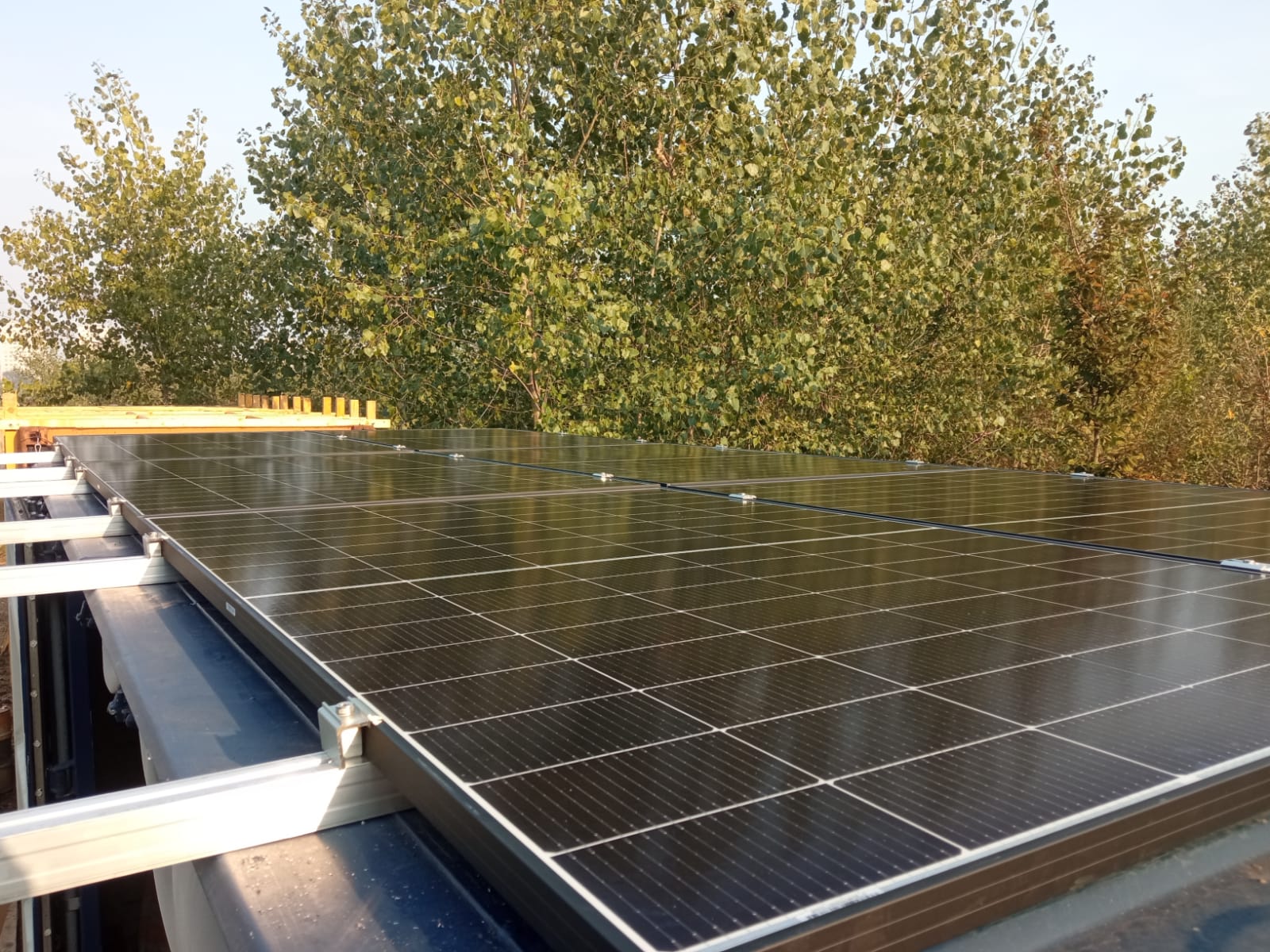 impianto sul tetto piano per progetto hanami.soulfoodforestfarms.it di 3,6kwp con accumulo 5kwh weco. Impianto di enostra con cui ecorisoluzioni è convenzionata.